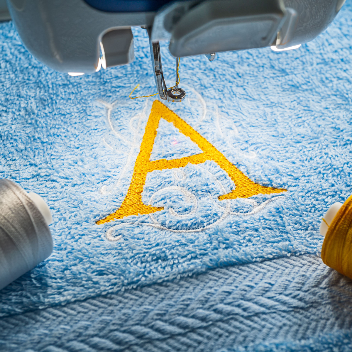 La broderie utilise des fils de couleur pour un marquage en relief.