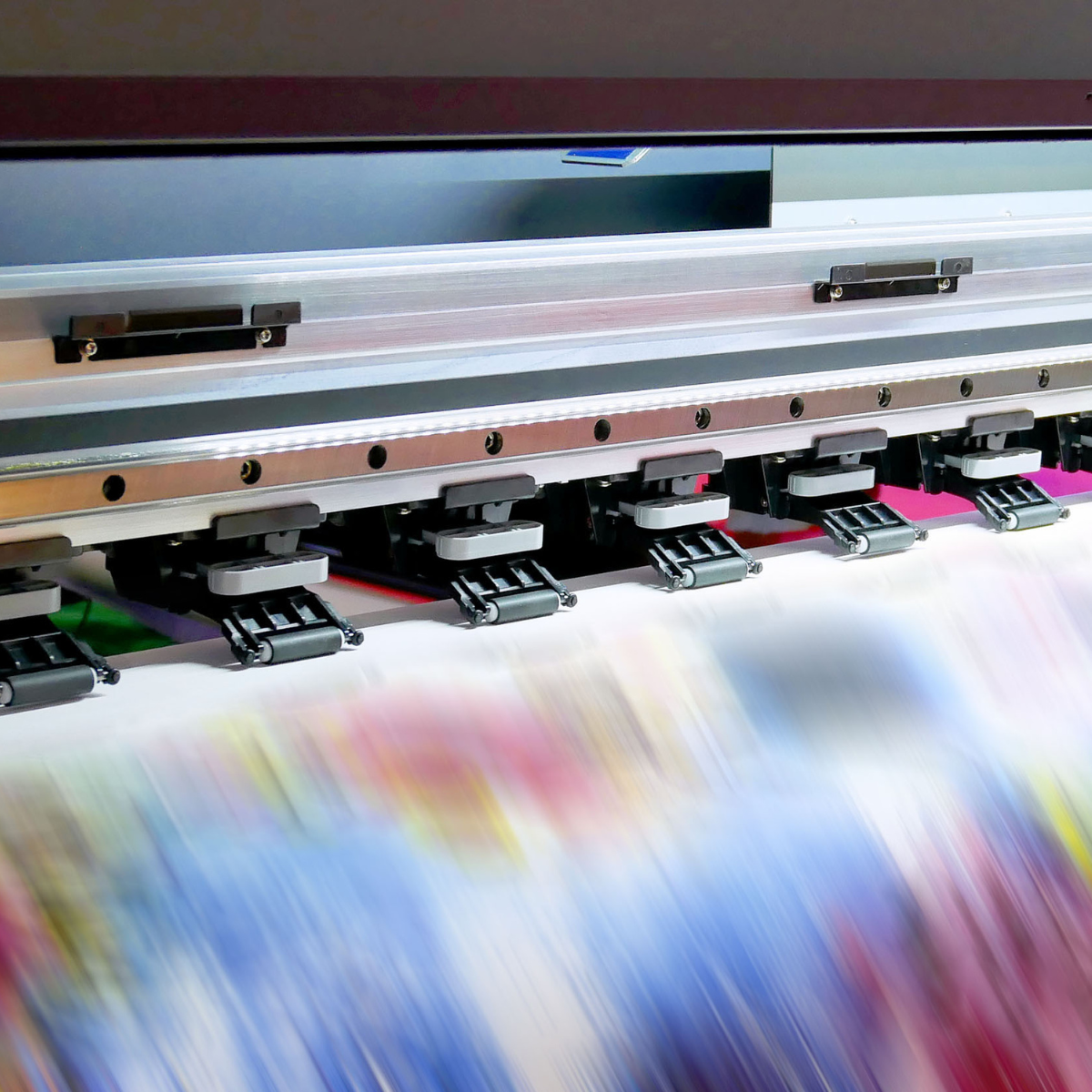 La sublimation imprime par jet d’encre sur un papier spécifique, puis l’encre pénètre la matière grâce à la chaleur.