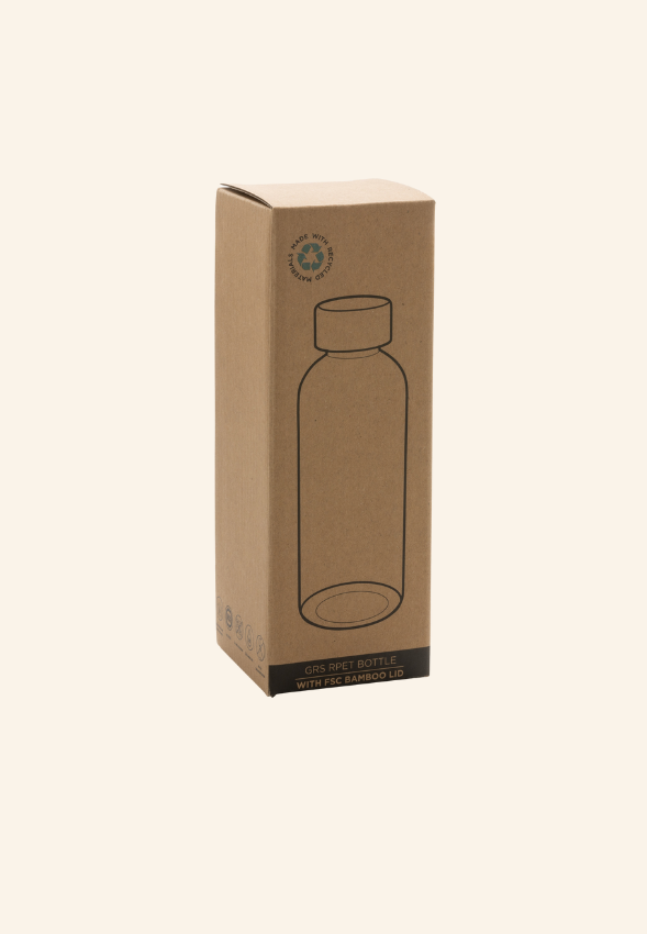 Je suis EcoBottle, une bouteille légÚre et pratique conçue en rPET certifié RCS avec un couvercle en bambou certifié FSCŸ. Je suis idéale pour une utilisation quotidienne tout en garantissant une fabrication traçable et responsable.