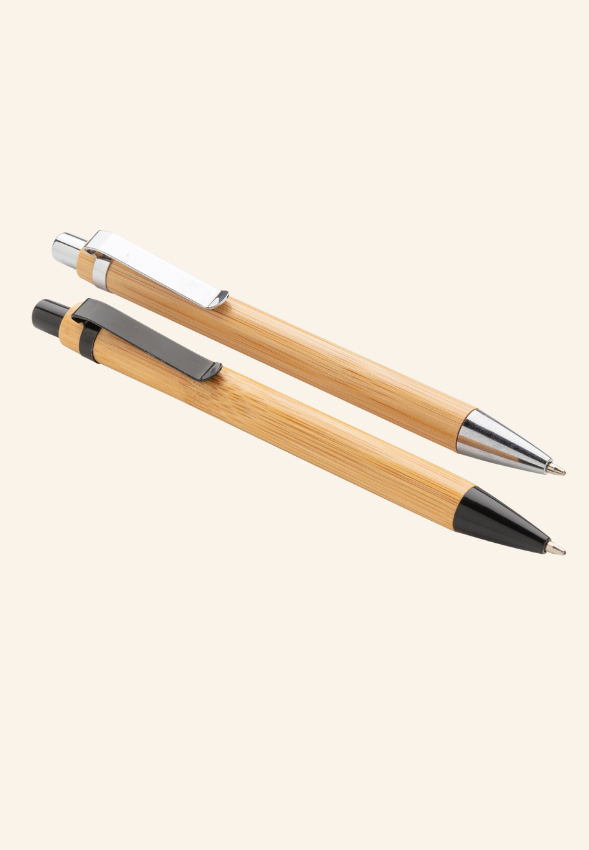 ‱ Stylo Ă  bille en bambou avec clip mĂ©tal (encre noire)