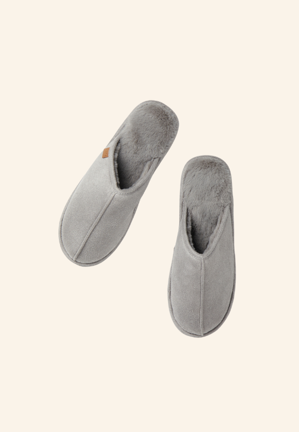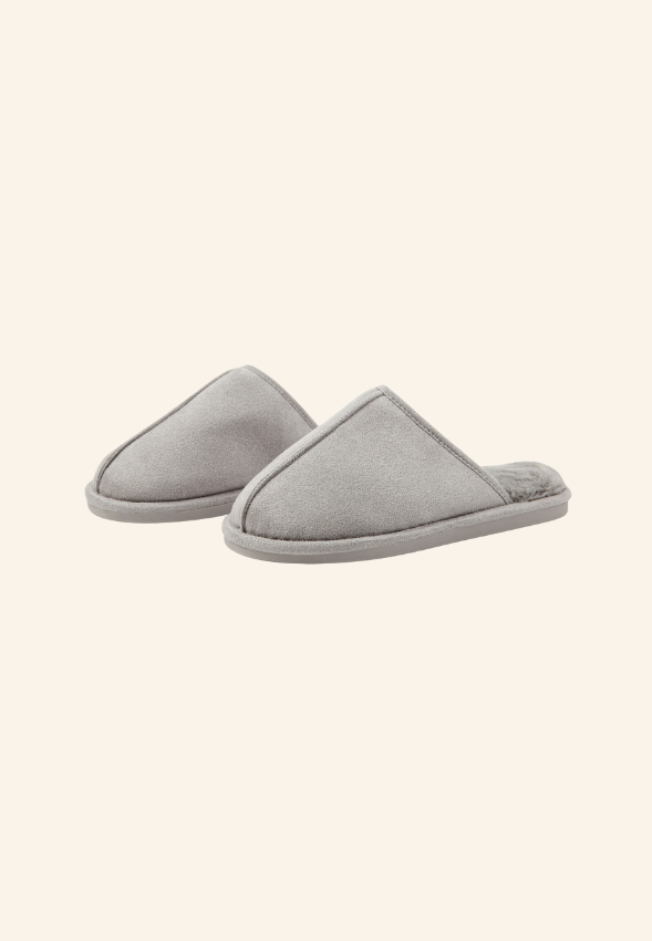 ‱ Pantoufles douillettes, intĂ©rieur moelleux, extĂ©rieur en faux suĂšde, semelle Ă©paisse et confortable, tailles S/M ou L/XL