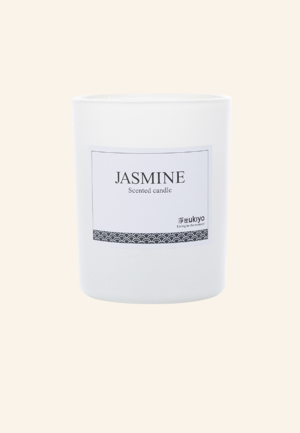 ‱ Bougie parfumĂ©e Ukiyo au jasmin, pot Ă©lĂ©gant, environ 20 h de combustion