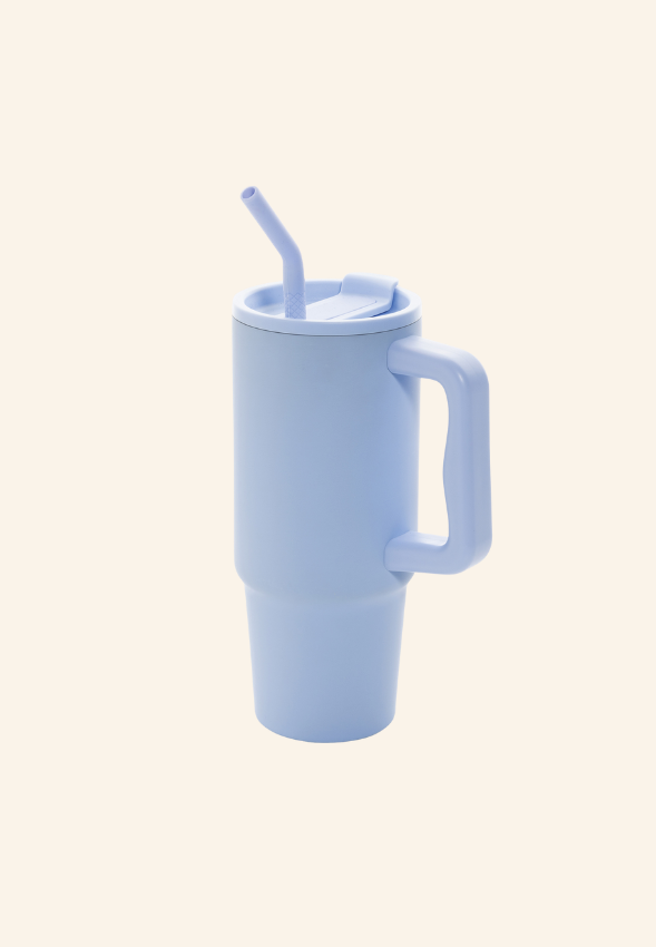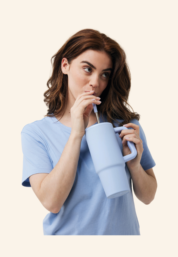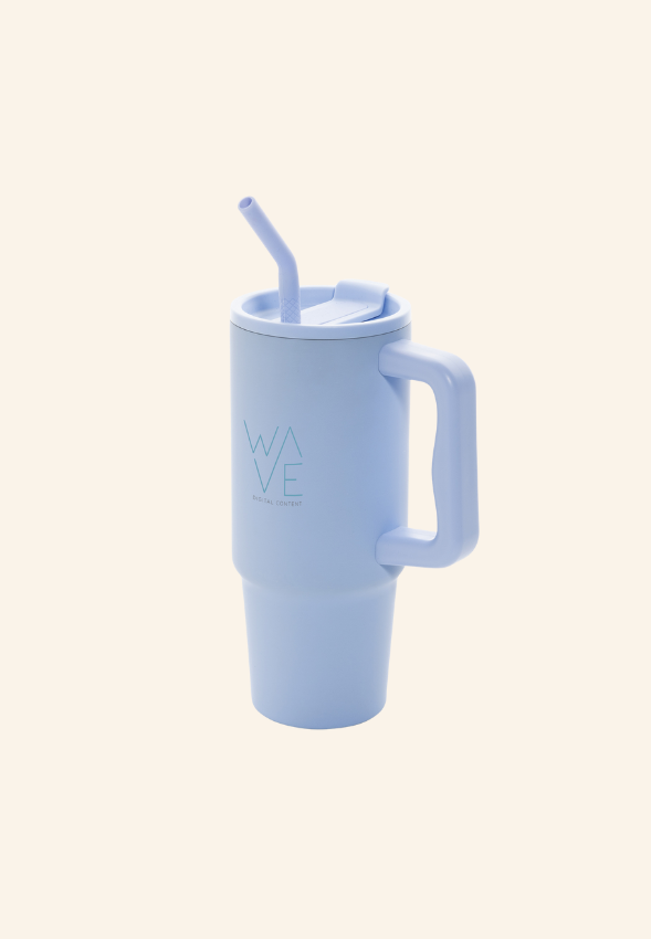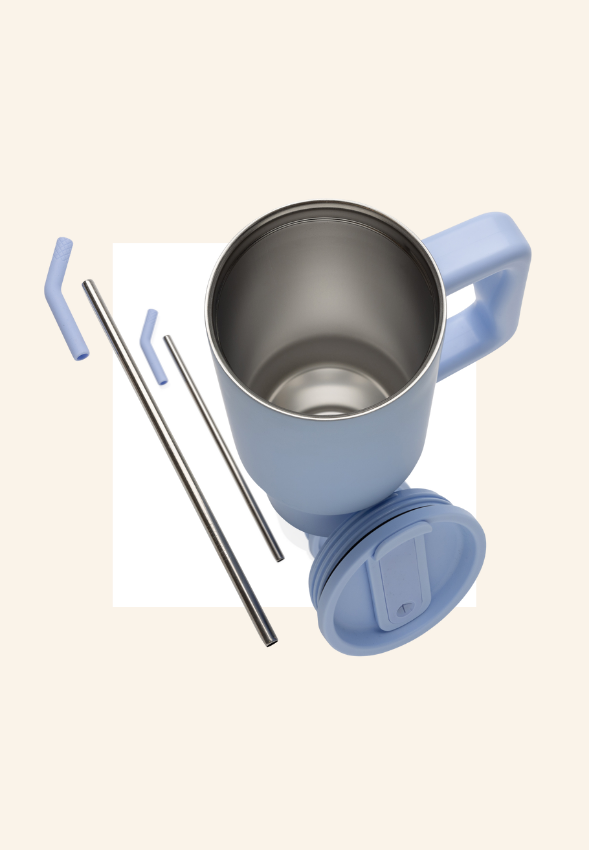 • Mug 900 ml à double paroi – acier inoxydable recyclé, isotherme, couvercle pratique, sans BPA.