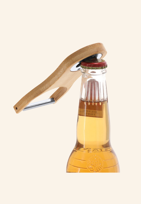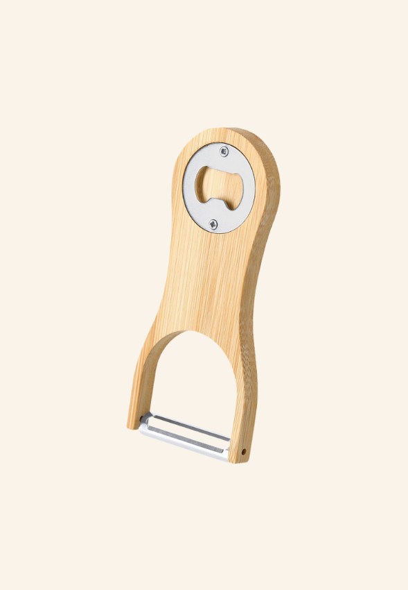 • Matière : bambou pour le manche, acier inoxydable 420 pour l’éplucheur, finition métallisée pour l’ouvre-bouteille
