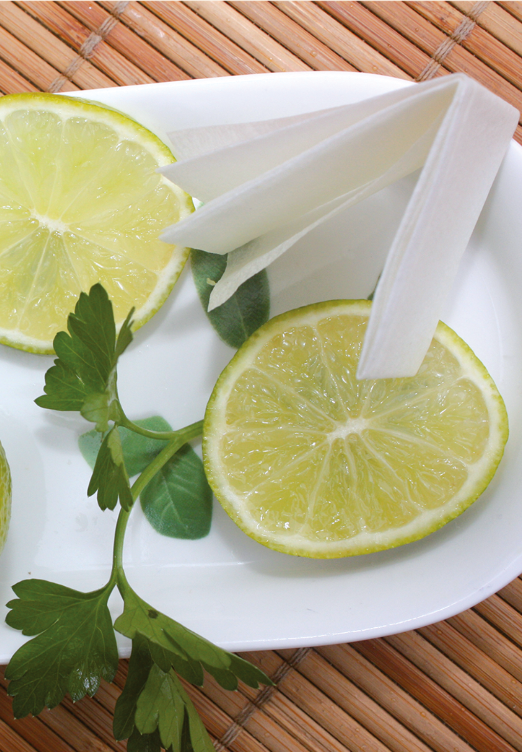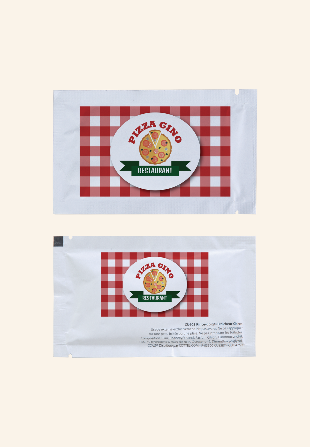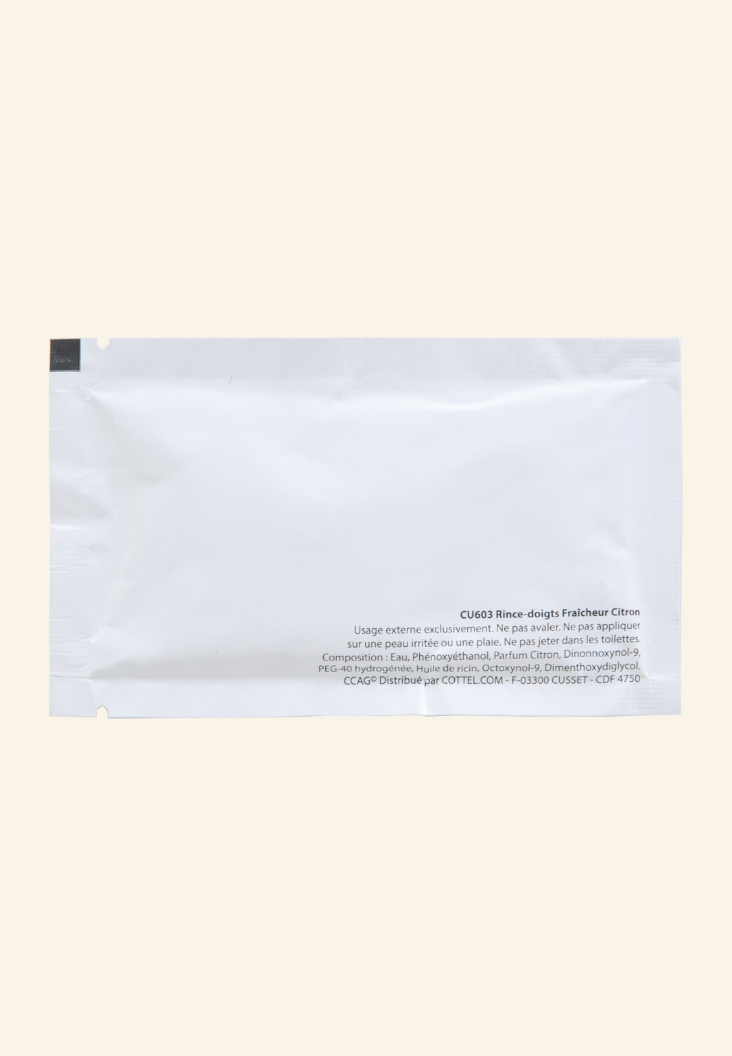 Je suis le sachet avec un rince-doigt parfum citron en Pochette en papier. Lingette non tissé 40 gr./m², idéal pour rafraîchir vos mains à tout moment. Pratique et portable, je suis parfait pour une utilisation après les repas ou en déplacement.