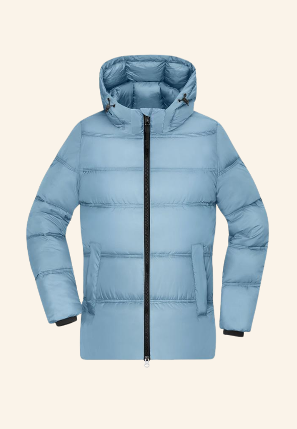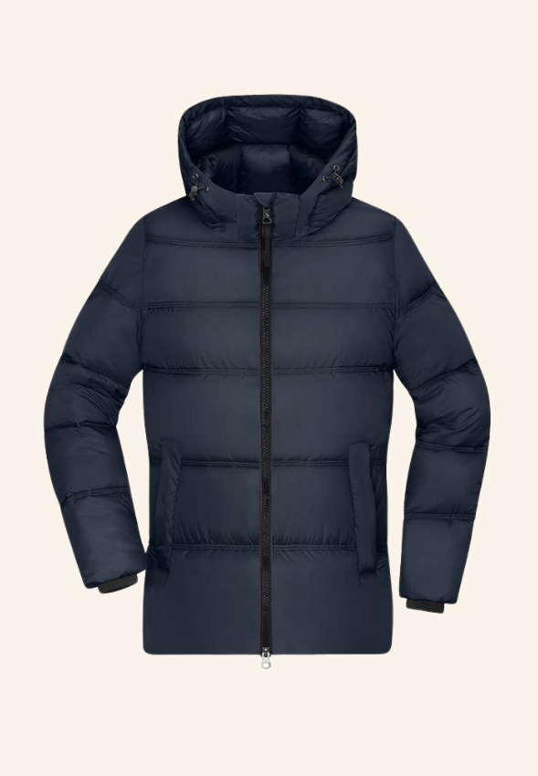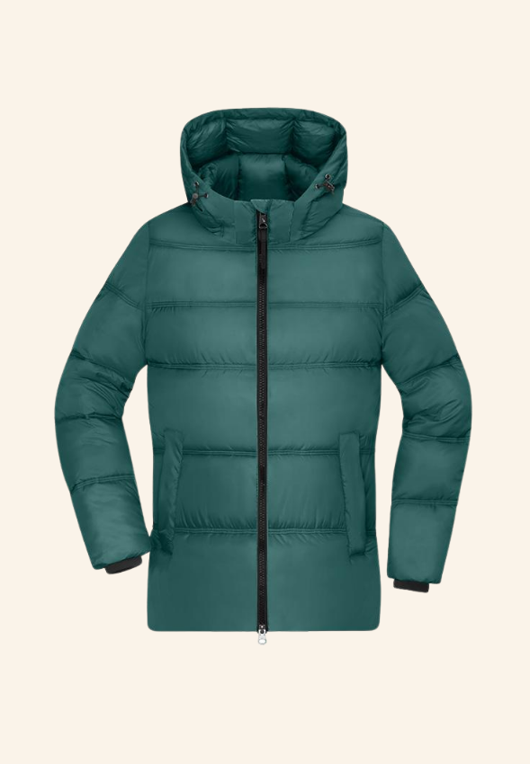 Je suis Aeronna, une doudoune longue pensée pour protéger du froid tout en reflétant vos engagements environnementaux. Conçue avec une isolation thermique Sugenro® en fibres recyclées, je combine performance, durabilité et style. Ma coupe féminine, mes finitions soignées et ma capuche amovible me rendent aussi pratique qu’élégante, idéale pour un usage professionnel.