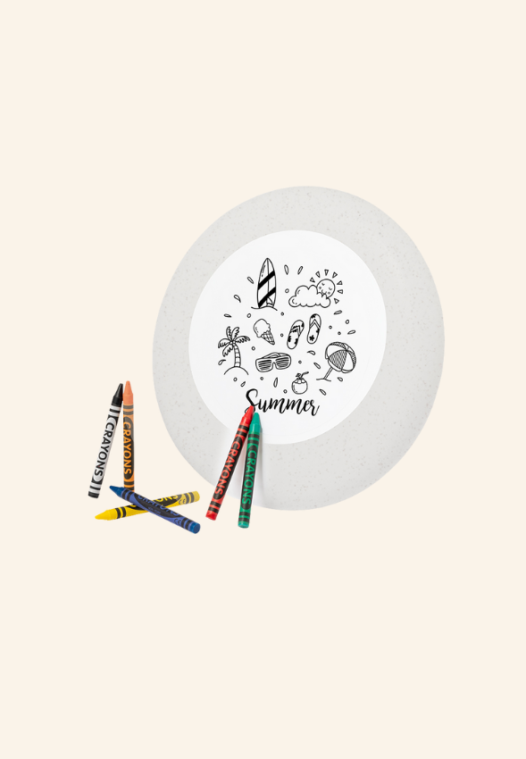 • Contenu : frisbee à colorier, boîte de 6 cires, 6 marqueurs