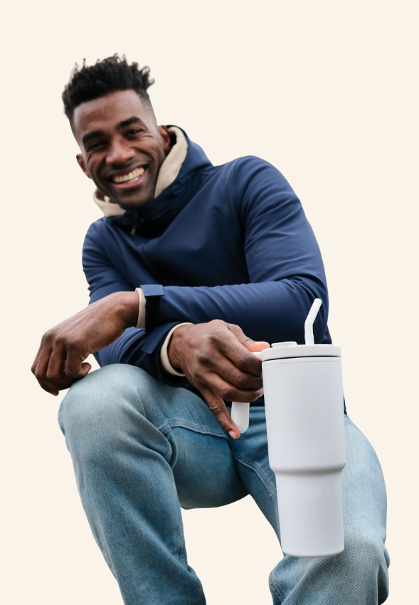 Je suis Mariel, un mug en acier de 900 ml conçu pour allier praticité, style et respect de l’environnement dans vos actions B2B. Fabriqué à partir de matériaux recyclés et doté d’un couvercle innovant, je vous accompagne partout tout en valorisant votre marque.