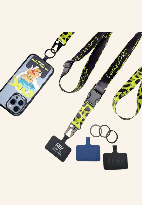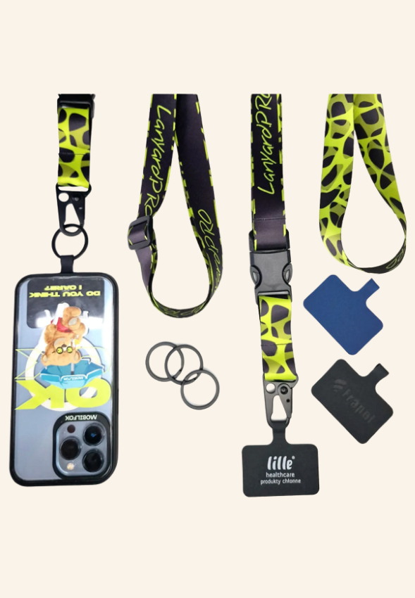 Je suis FlexiHold, un lanyard porte-téléphone sublimé en pleine couleur, conçu pour garder votre smartphone accessible en toute sécurité tout en reflétant vos valeurs éco-responsables. Fabriqué en rPET recyclé, je combine fonctionnalité, confort et respect de l’environnement.